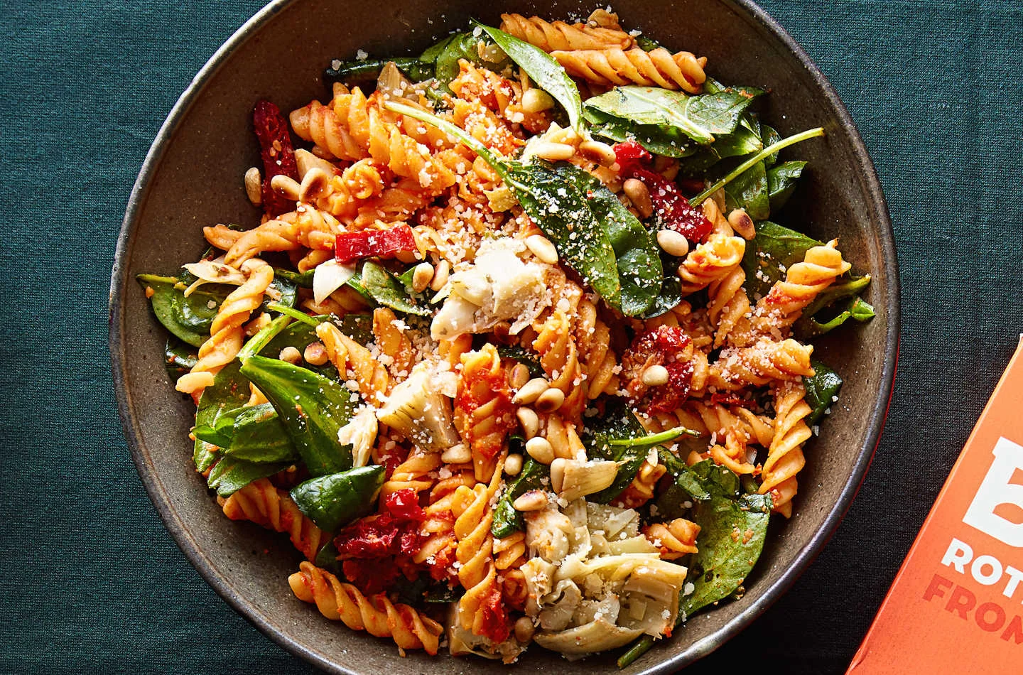 Rotini w/ Red Pepper Pesto and Artichokes